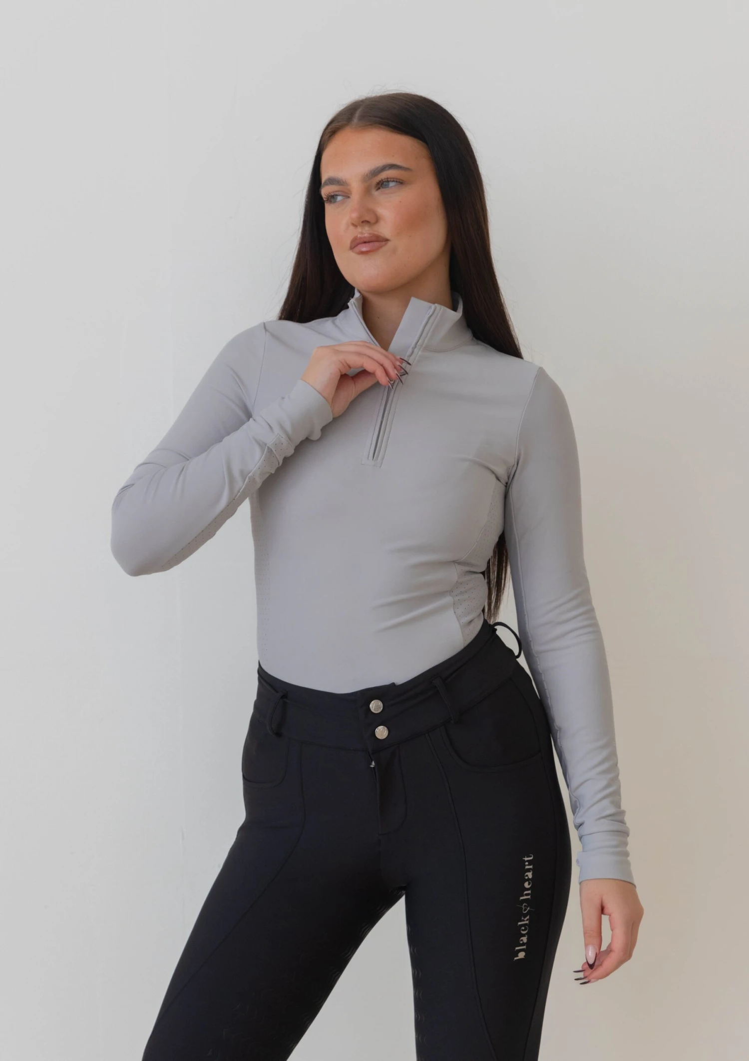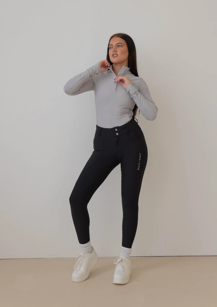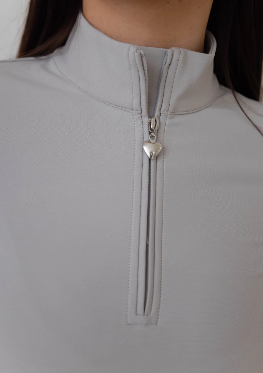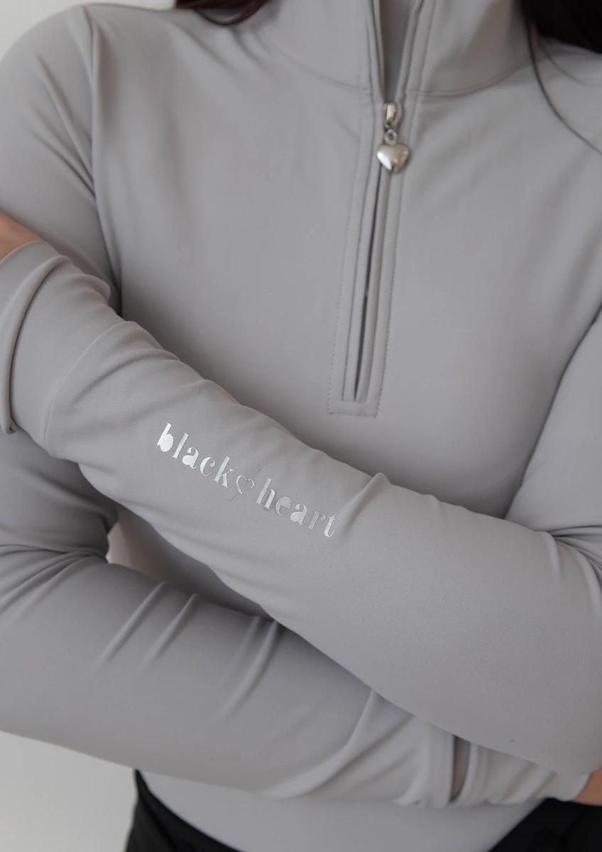 This top has a tailored feminine fit and features silicone Black Heart branding and metal heart zip puller.
