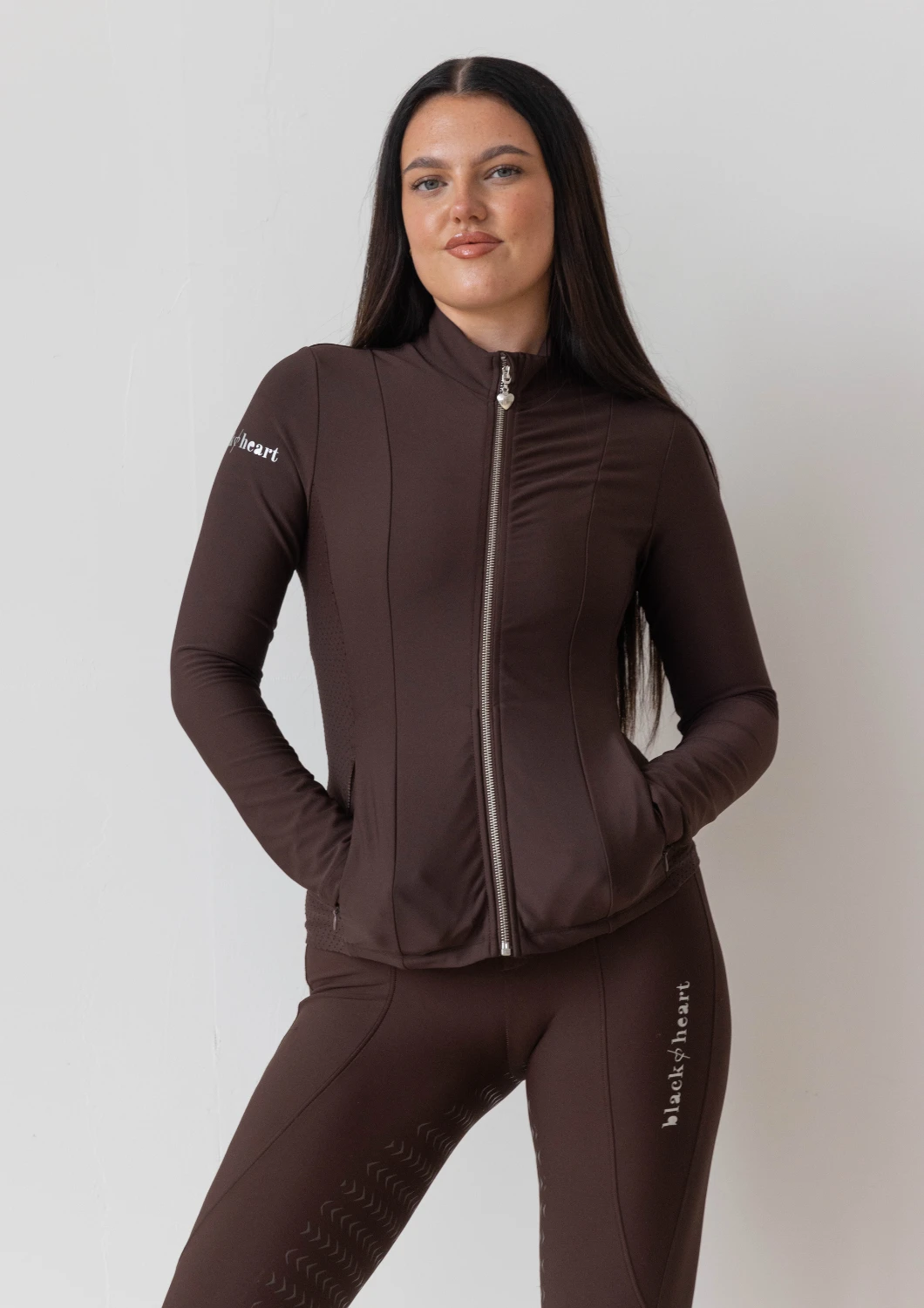 Featuring under arm laser cut mesh panels for added breathability these jackets have been created for riding and sport.   With a full front zip, they are perfect worn on their own over a sports bra, as a sports jacket or as a mid layer for colder weather. Â